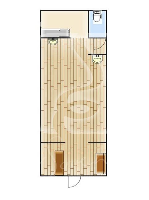 セット面2席、シャンプー台2台、受付カウンター×1のレイアウトです。